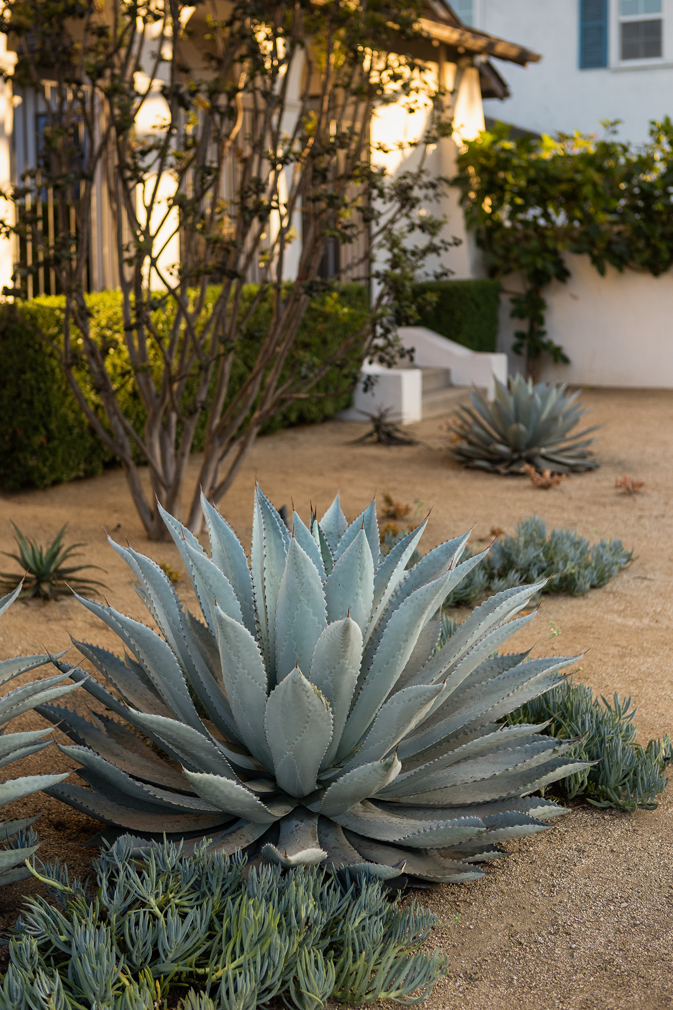 - Layered planting for softness and structure